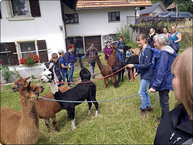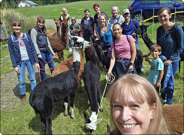 Zum Schluss der Wanderung noch ein Gruppemfoto mit den Alpakas.