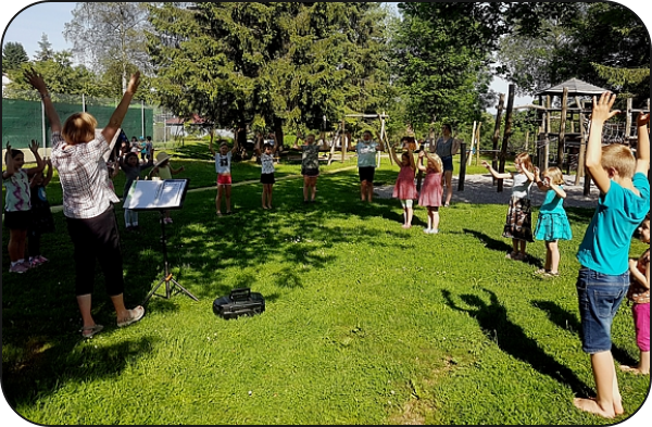 verschiedene Lieder im Freien zu proben.