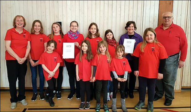 Zum Abschluss noch ein Gruppenfoto des Kinderchors mit den Geehrten.