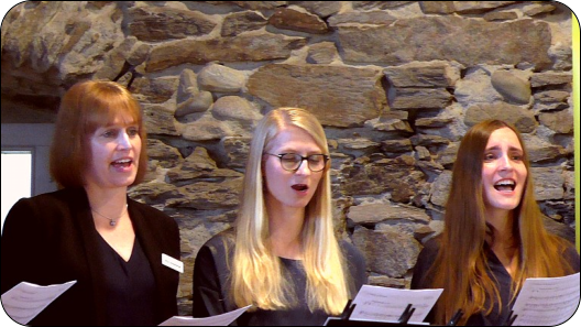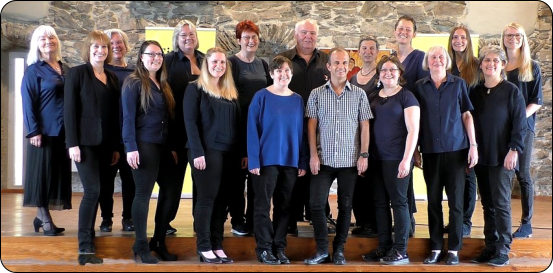 Das Frauenensemble mit Ehrenvorsitzenden und Chorleiter (Mitte)