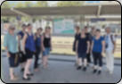 Nach einer lustigen Zugfahrt Ankunft auf dem Bahnhof Singen