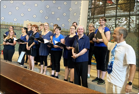 Zum Schluss genießen der Dirgent und die Sängerinnen